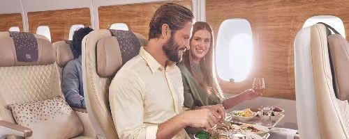 다양한 목적지의 음식의 풍미를 메뉴에서 선택된다. 수많은 코미디와 스릴러, 멜로 영화나 수천 여개의 채널을 기내에서 마음껏 즐겨 볼 수 있다. 최신 영화와 이용객의 가장 좋아하는 컬렉션한 영화에서 추천해 준다. 어린이 승객들도 150여 개의 어린이 위한 오락채널도 즐겨 볼 수 있다. 맛있는 음식에 걸맞아 무료 음료와 함께 제공한다.